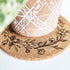 The floral wreath design is laser engraved onto the cork trivets in our Colorado studio